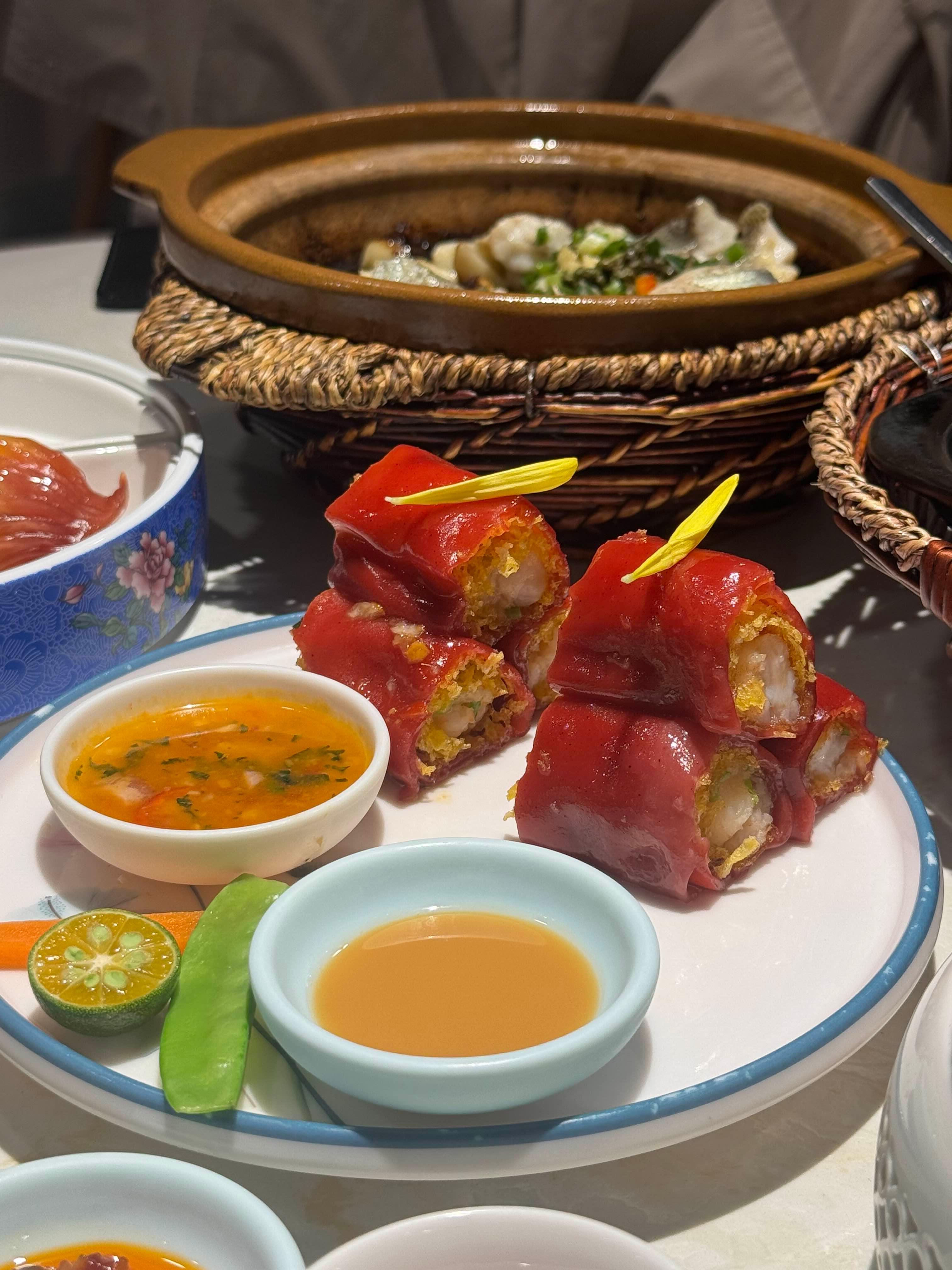 빨간 만두피 안에 튀김이 들어가 있는 메뉴로 특별했지만 그렇게 맛이 좋은 건 아니었던 것 같습니다.